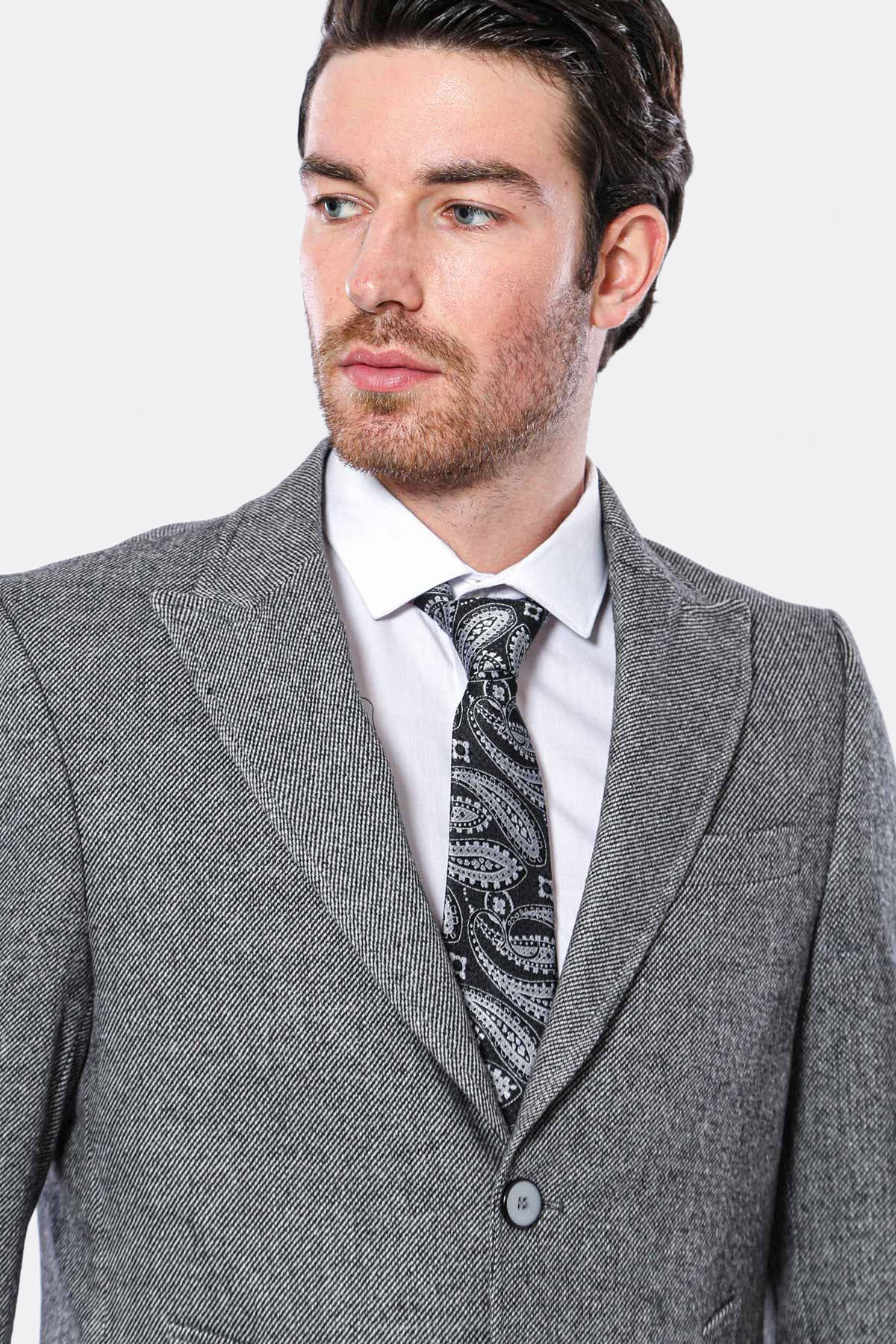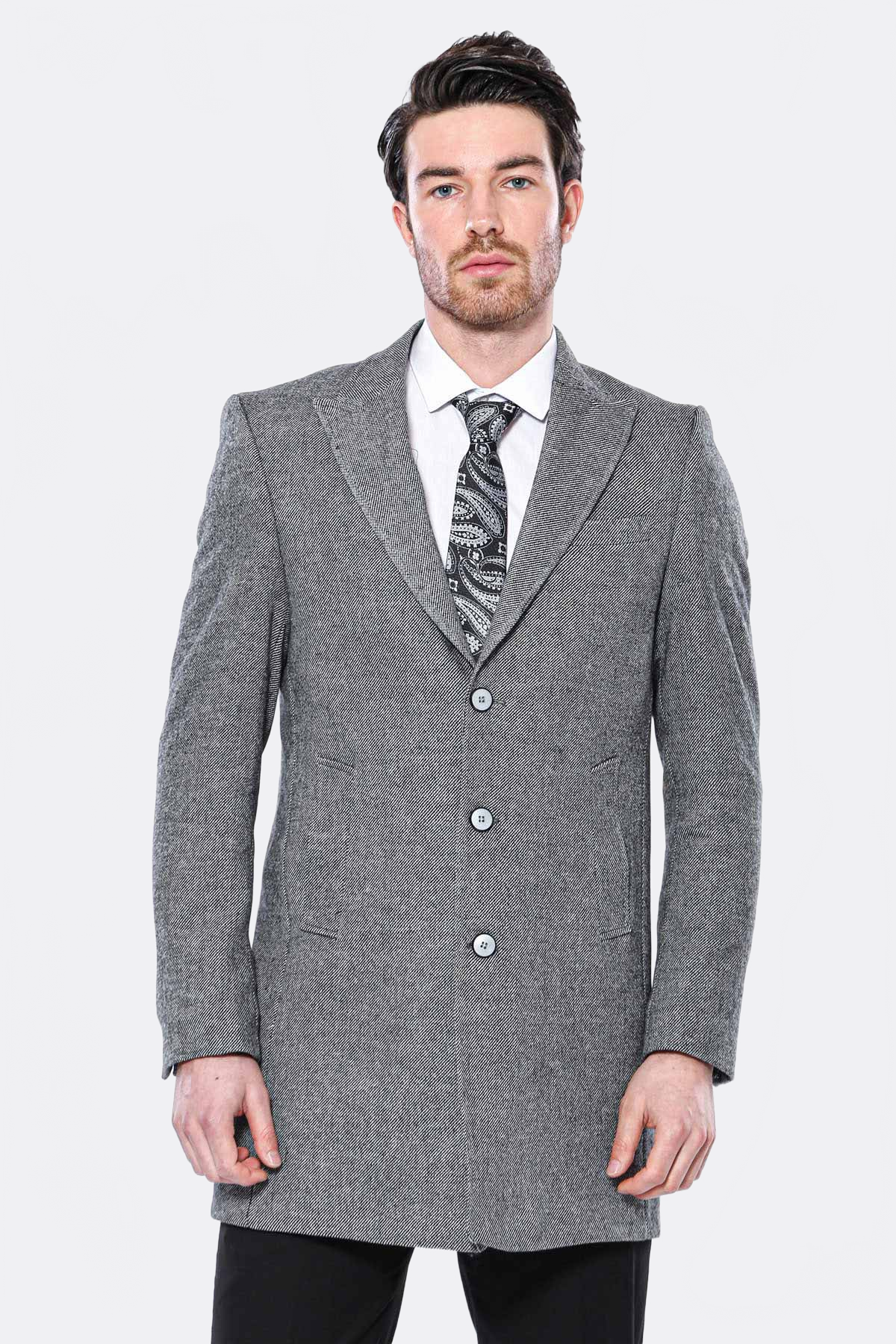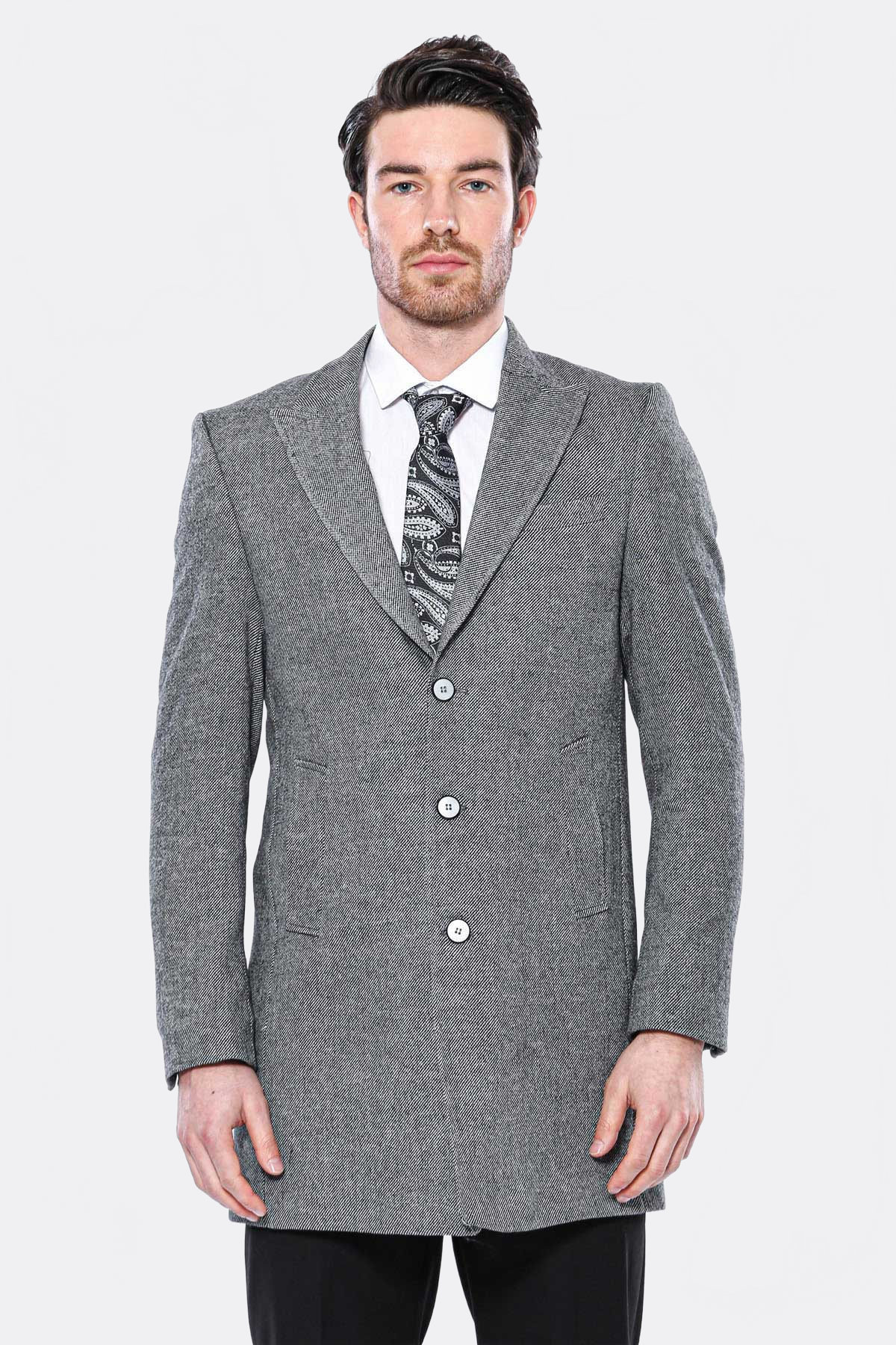 Серое мужское длинное пальто Cachet Peak Lapel - Wessi