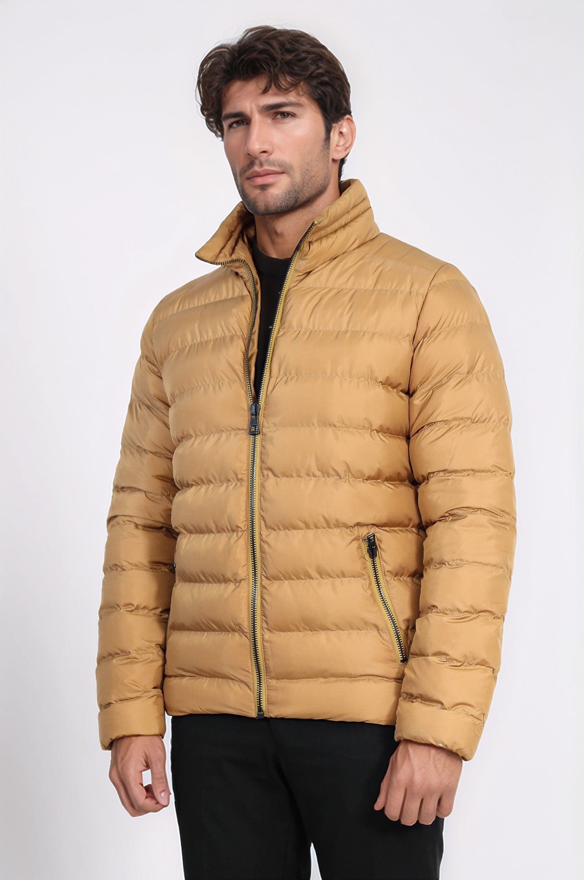 Модели надувных курток – модель, которую используют преимущественно молодые мужчины. Этот светло-коричневый узор со стеганой строчкой создает стильный и современный вид. Эта модель пальто, которая благодаря крутому воротнику выглядит еще круче, создана для того, чтобы согреть вас. Эта надувная модель пальто, имеющая два кармана на молнии, открывается и закрывается на молнию. Внутри куртки имеется карман на молнии. Эта надувная куртка – довольно стильное изделие.
