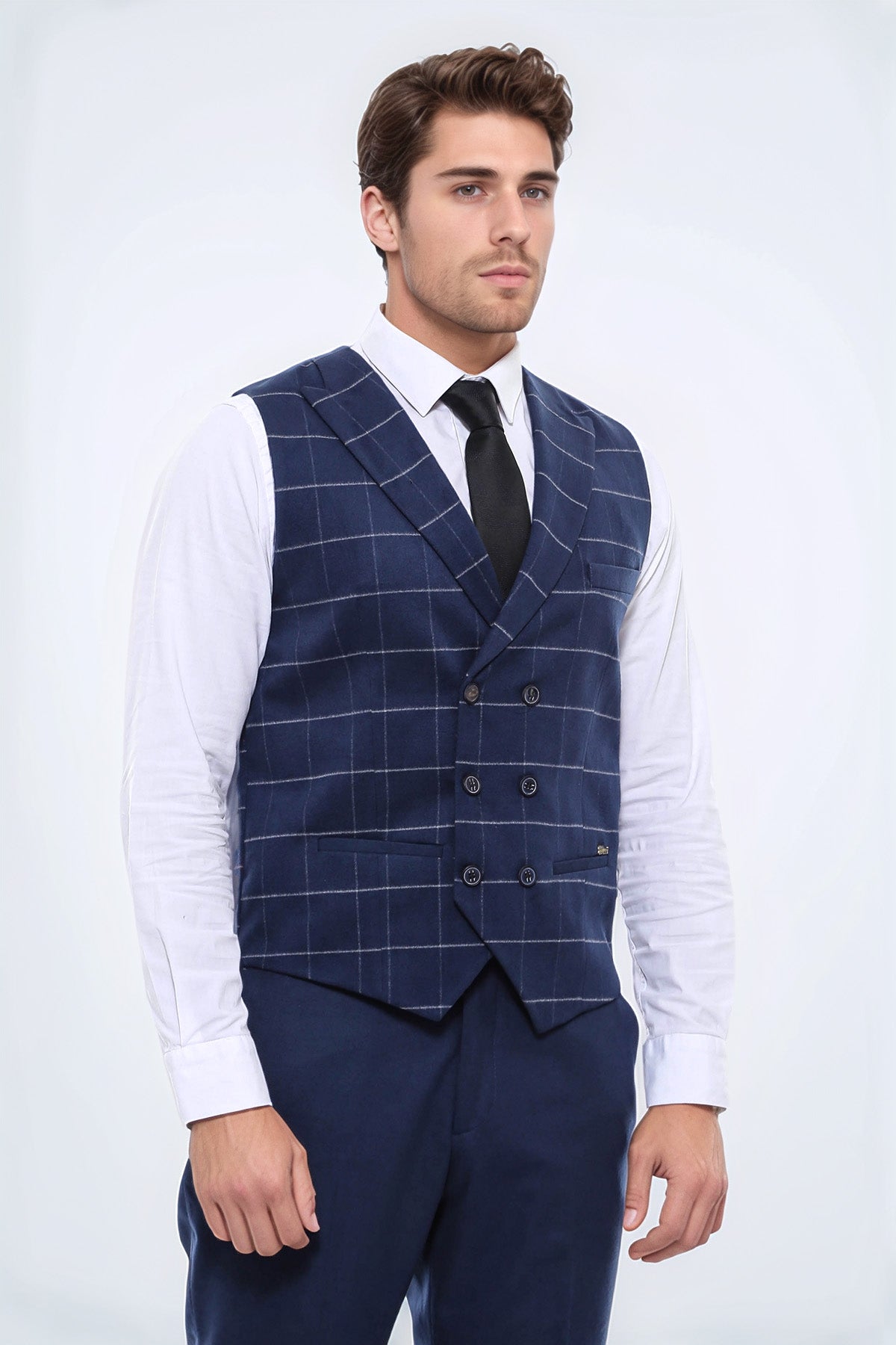 Если вы хотите произвести на собеседовании одновременно профессиональное и стильное впечатление, предлагаем отличный вариант, который станет незаменимой частью вашего гардероба: синий мужской двубортный жилет приталенного кроя в клетку. Этот жилет придаст вам эффектный и изысканный вид на собеседовании или важной встрече. Синий цвет вызывает надежность и уверенность, а клетчатый узор делает жилет особенным. Двубортный дизайн делает жилет стильным и оригинальным. Сочетайте этот синий жилет с белой рубашкой без узора и брюками того же оттенка синего, чтобы создать профессиональный образ на работе. Черные кожаные туфли и ремень в тон под ними помогут завершить образ. Без галстука и без пиджака вы сможете подчеркнуть свою простоту и элегантность. Этот жилет сочетает в себе надежность и стиль. Закажите этот жилет сейчас и получите выгодную цену!