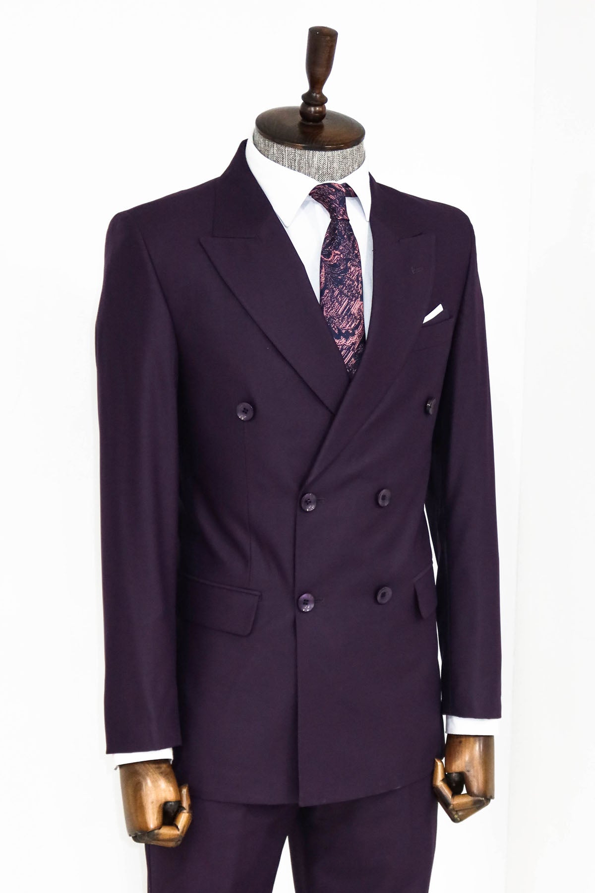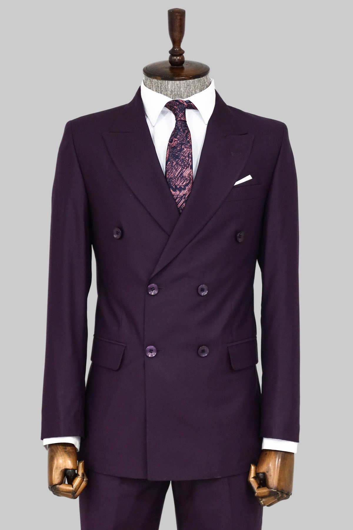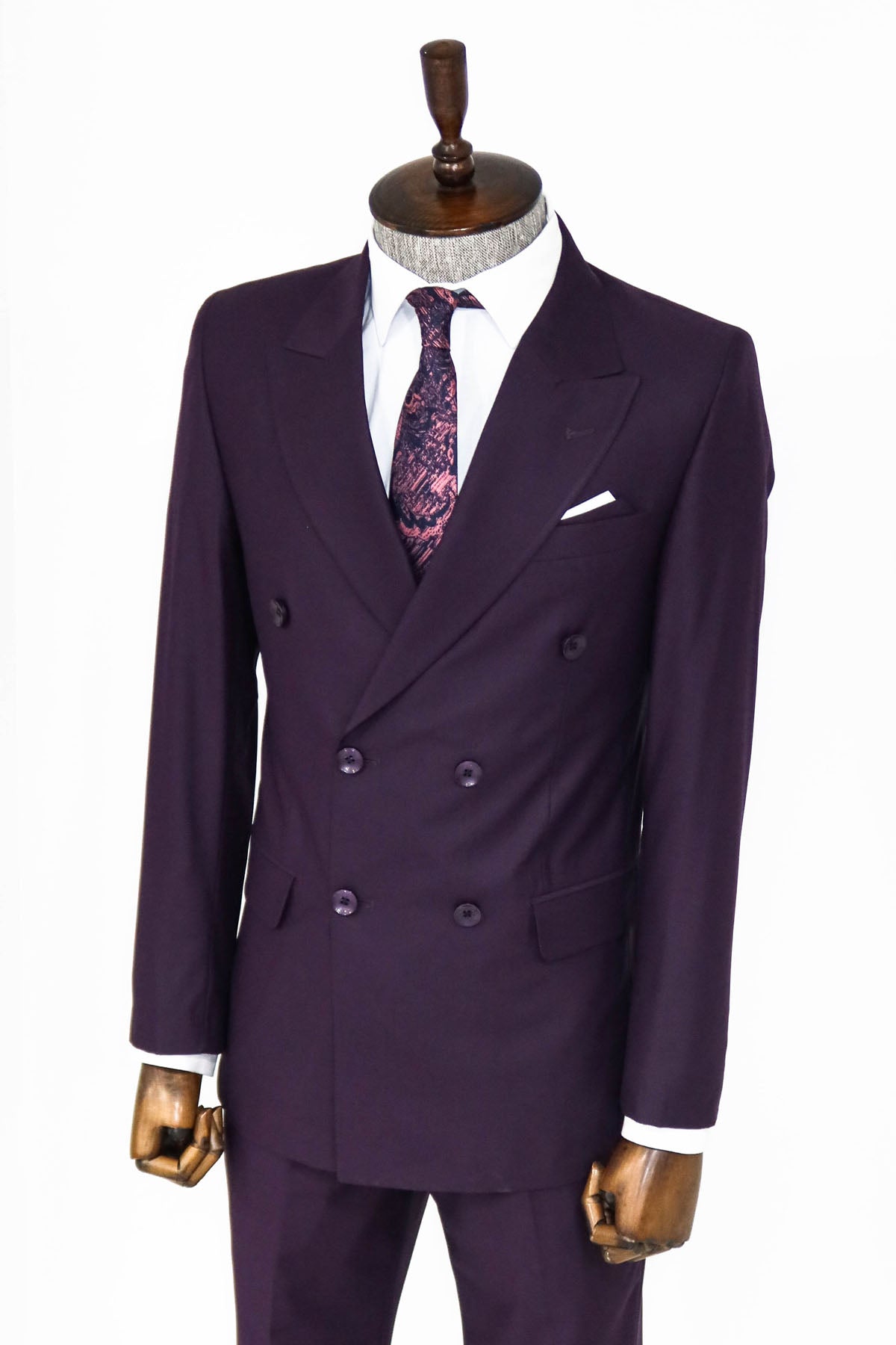Двубортный мужской костюм фиолетового цвета с широкими лацканами - Wessi