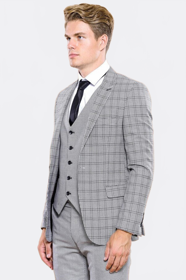 Мужской костюм в серую клетку с жилетом | Весс