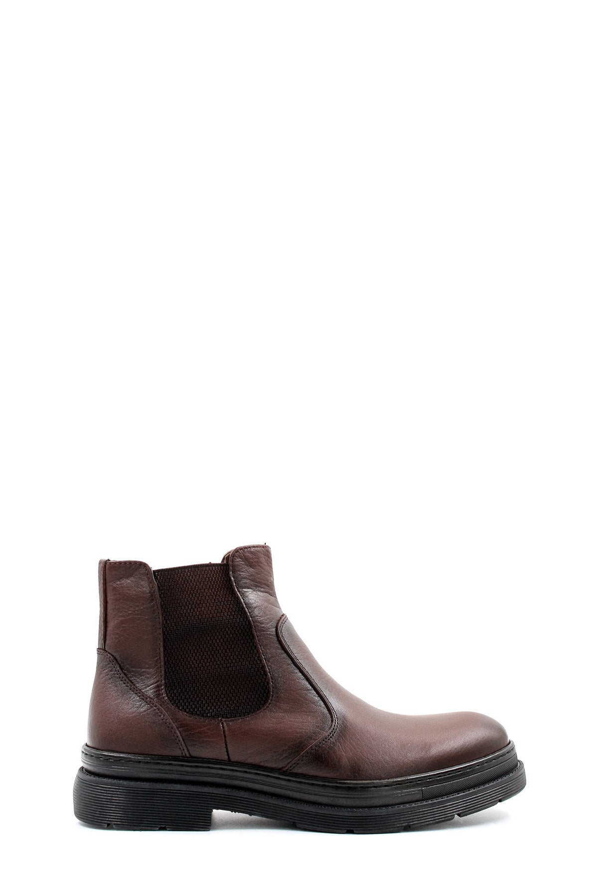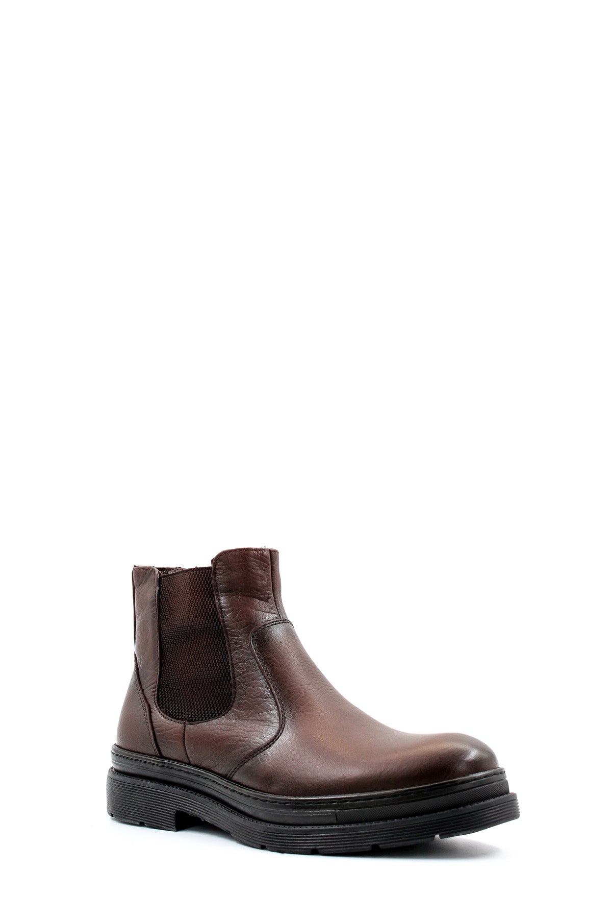Мужские коричневые кожаные ботинки челси с эластичными боковыми вставками и меховой подкладкой - Wessi