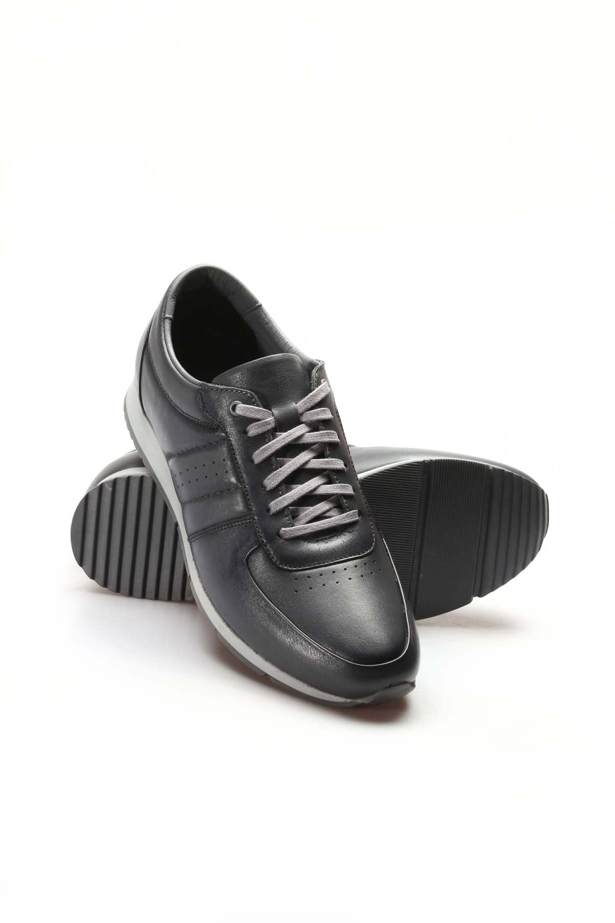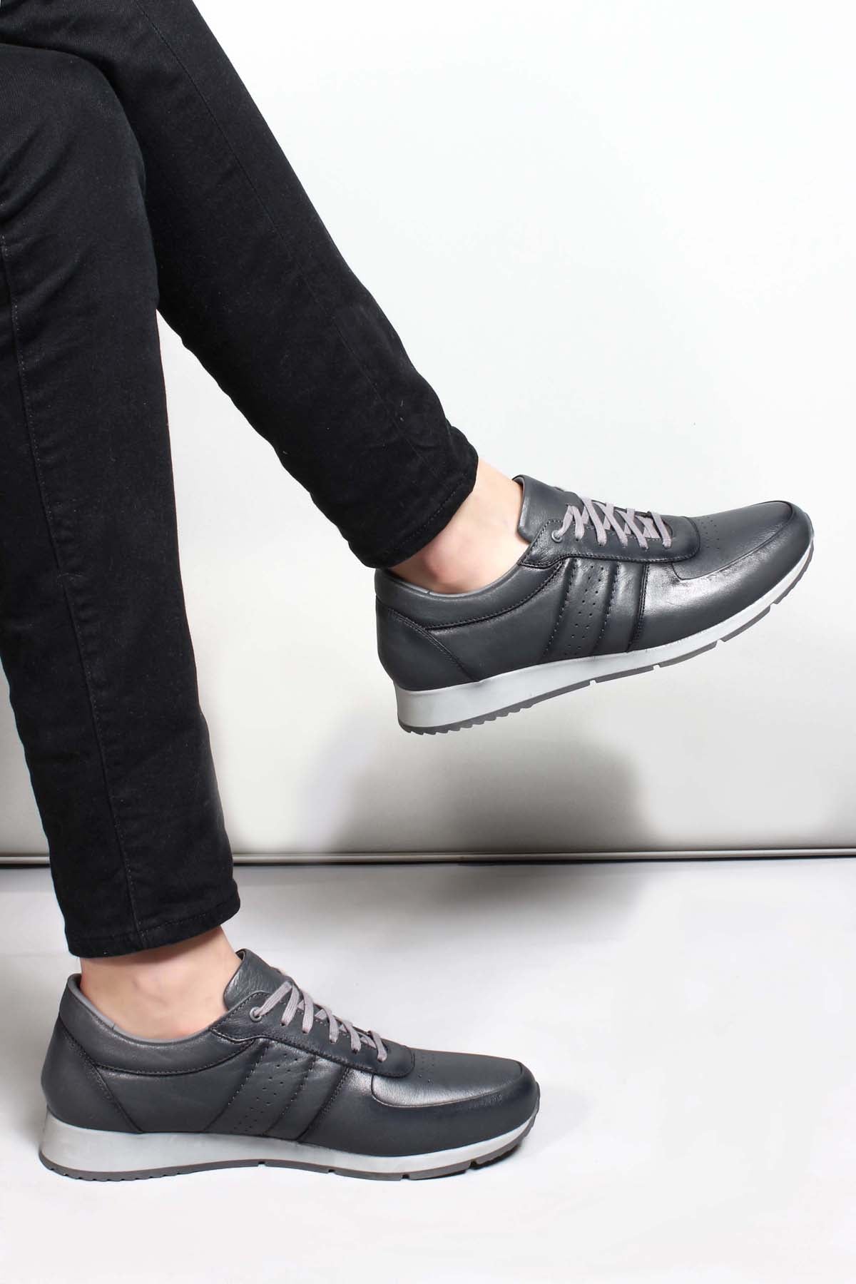 Мужские серые кожаные низкие кеды на контрастной подошве - Wessi