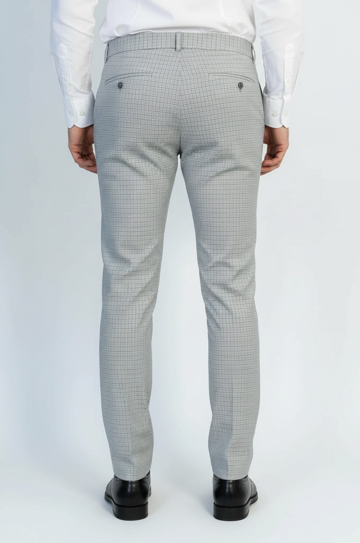 Мужские брюки помогут вам подчеркнуть свой стиль в любое время года и в любой ситуации. Благодаря разным фасонам вы можете передать классическую элегантность, а также адаптироваться к современному и молодежному стилю. Выбор ткани сочетает в себе комфорт и элегантность. Это незаменимая часть вашего гардероба как в деловой жизни, так и на светских мероприятиях. Серые мужские брюки узкого кроя в клетку с двумя деталями карманов созданы для мужчин, которые хотят сочетать элегантность и комфорт. Вы можете совместить комфорт и стиль, дополнив эти серые клетчатые мужские брюки узкого кроя с двумя деталями карманов нарядом, отражающим стиль повседневного комфорта. Сочетайте их с белой футболкой и вязаным кардиганом, чтобы создать повседневный шикарный образ. В качестве обуви можно выбрать белые кроссовки или удобные кроссовки, которые дополнят образ. Серый клетчатый узор придаст вашему образу простоту и стильность, а сочетание светлого кардигана и белой футболки создаст повседневный стиль. Создать оригинальный стиль можно, дополнив сочетание аксессуарами, подходящими вашему стилю. Эта повседневная комбинация в сочетании с серыми клетчатыми брюками узкого кроя с двумя карманами отразит ваш повседневный комфортный стиль, позволяя вам чувствовать себя комфортно и стильно в повседневной жизни.