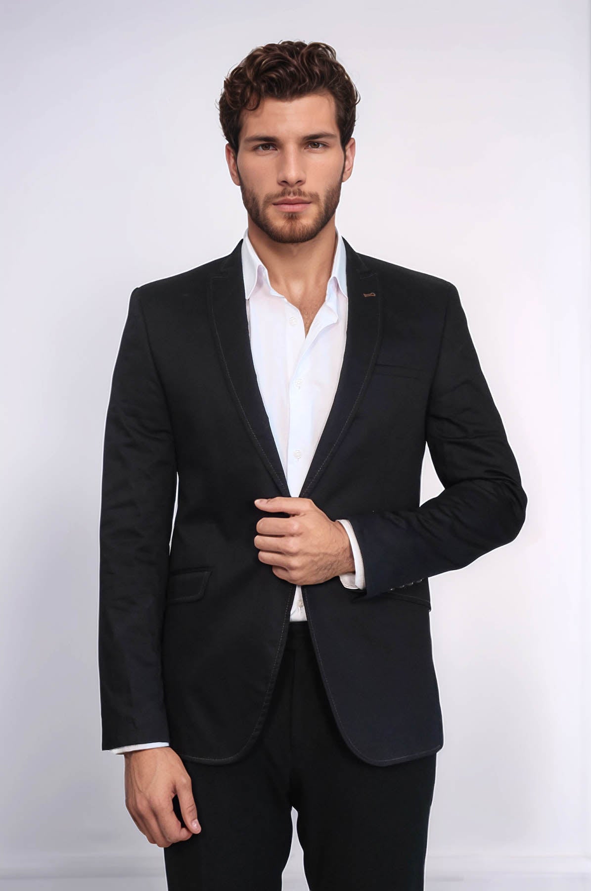 Детали: Однотонный лацкан, одна пуговица.
