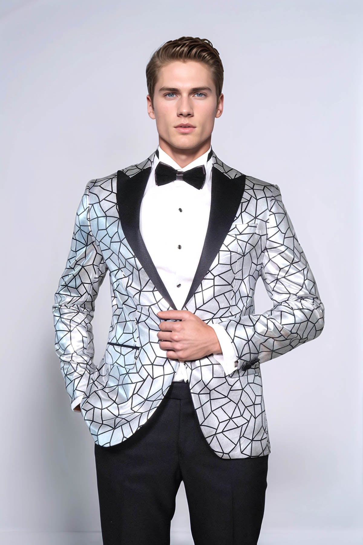 Этот пиджак, созданный с тщательным вниманием к деталям, имеет облегающий крой, который подчеркивает вашу фигуру, создавая строгий и сдержанный вид. Облегающий силуэт одновременно современен и приятен, позволяя вам чувствовать себя уверенно и в тренде на протяжении всего мероприятия. Сочетание черного узора с серой тканью создает очаровательный визуальный эффект, который выделяет этот пиджак среди других. Блестящий узор придает нотку индивидуальности и изящества, ловит свет и привлекает внимание к вашему безупречному стилю. Это идеальный способ продемонстрировать свою уникальную индивидуальность и произвести неизгладимое впечатление. Посещаете ли вы вечеринку, выпускной, свадьбу или какое-либо особое событие, этот пиджак произведет на вас неизгладимое впечатление. Подчеркните свою индивидуальность, излучайте уверенность и создайте незабываемые воспоминания с помощью этого исключительного изделия.