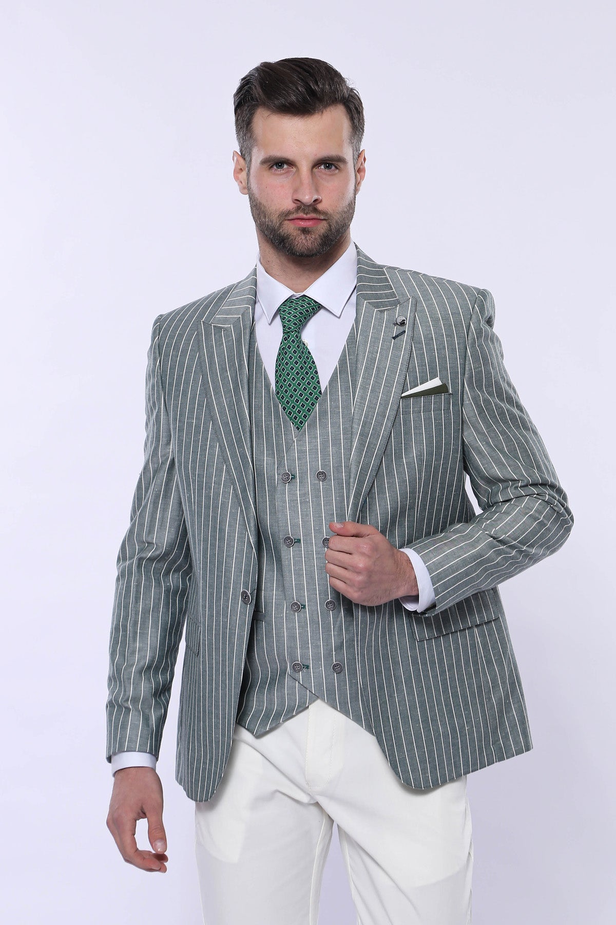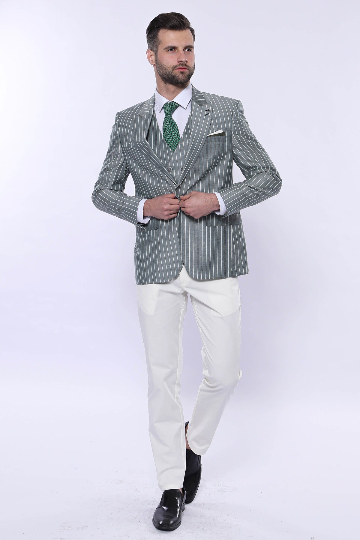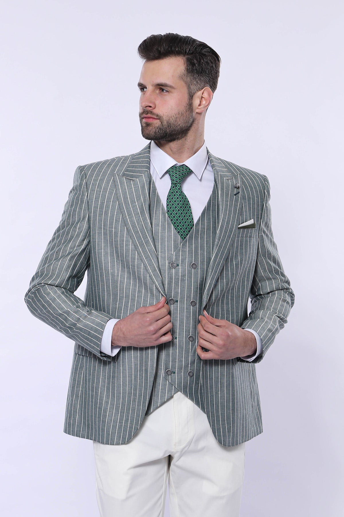 От классических заседаний в зале заседаний до вечерних мероприятий — хорошо скроенный костюм придаст вам уверенности и самообладания, которые необходимы каждому хорошему гардеробу. Этот современный образ идеально подойдет любому мужчине, который хочет заявить о себе в моде. Дополнительный бонус в виде полосок на этом костюме отвлечет внимание от проблемных зон, а также придаст вашему телу удлиненный вид. Кроме того, зеленый цвет добавит яркости вашему ансамблю, выделяя его во всех отношениях. С помощью одного простого предмета одежды вы сможете поднять свой повседневный образ на новый уровень и стать человеком, предпочитающим деловой повседневный стиль! Так что не упустите возможность – купите этот облегающий зеленый костюм в полоску сегодня и начните чувствовать себя уверенно и привлекательно при входе в любую комнату.