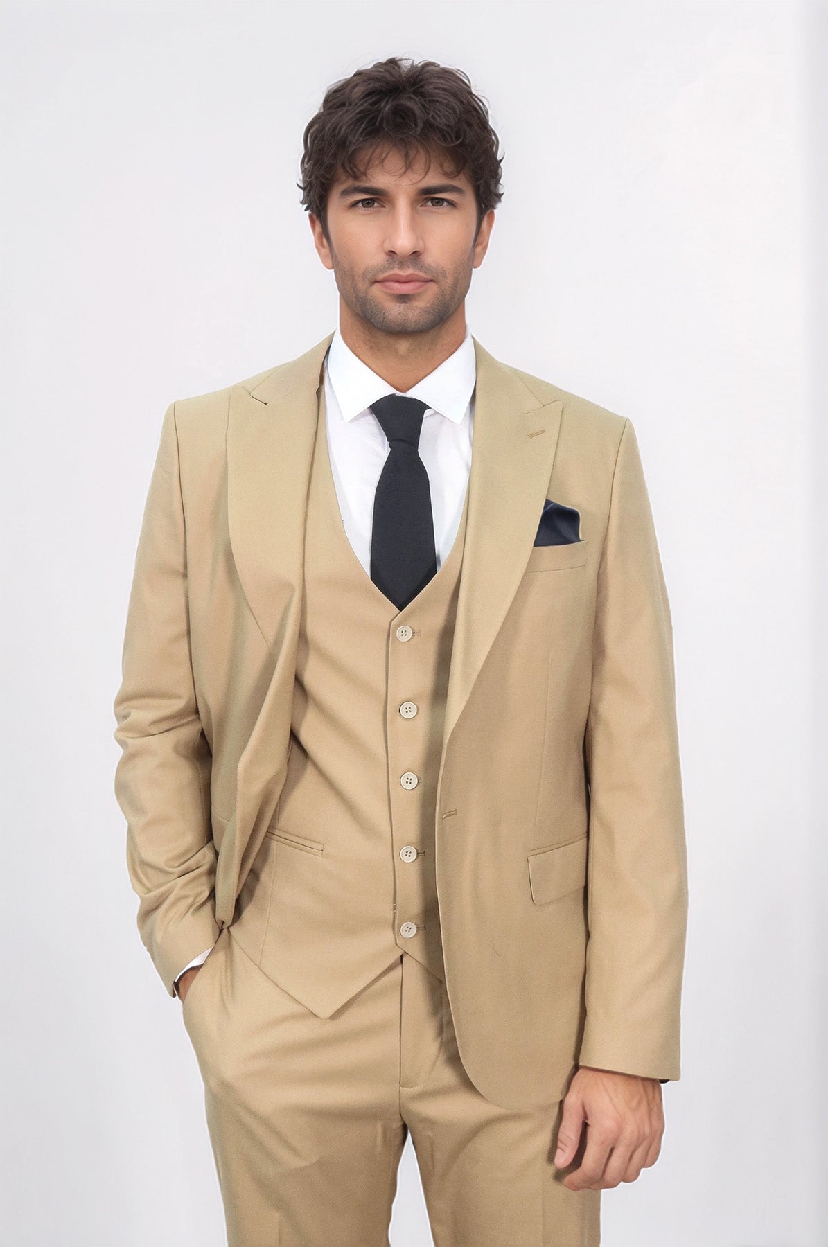 Этот светло-коричневый мужской простой костюм с жилетом от Wessi выглядит изысканно и современно. Изготовленный из высококачественных материалов с вниманием к деталям, он обеспечивает удобную посадку и стильный внешний вид. Этот костюм идеально подходит для любого официального мероприятия или профессиональной обстановки и является обязательным элементом гардероба любого мужчины.