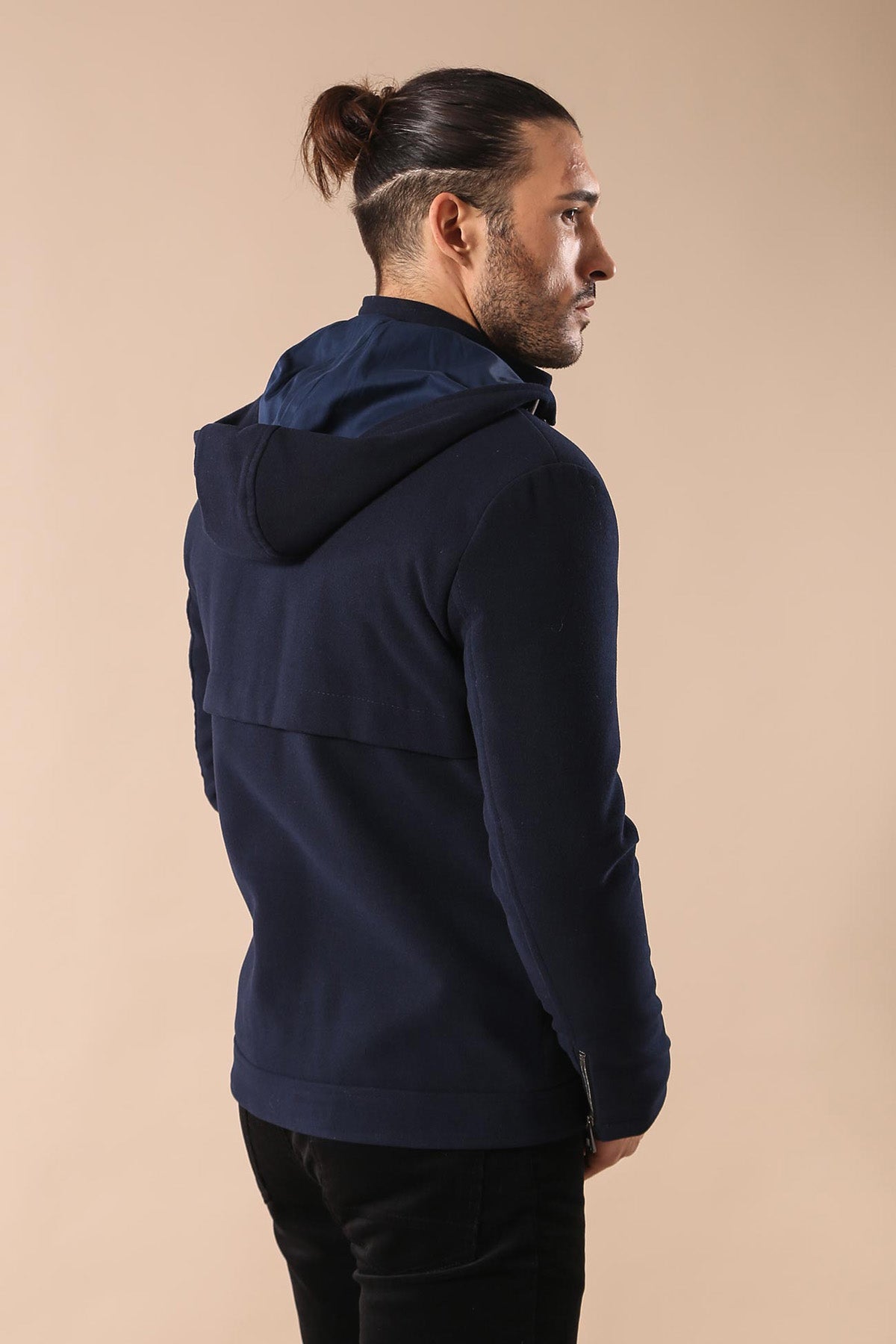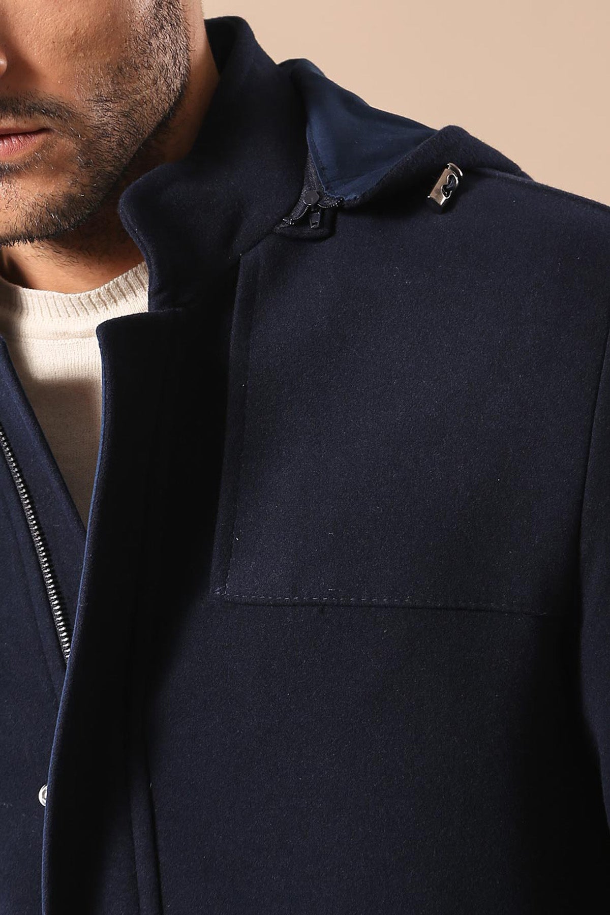 Синее мужское пальто с капюшоном и рукавами на молнии - Wessi